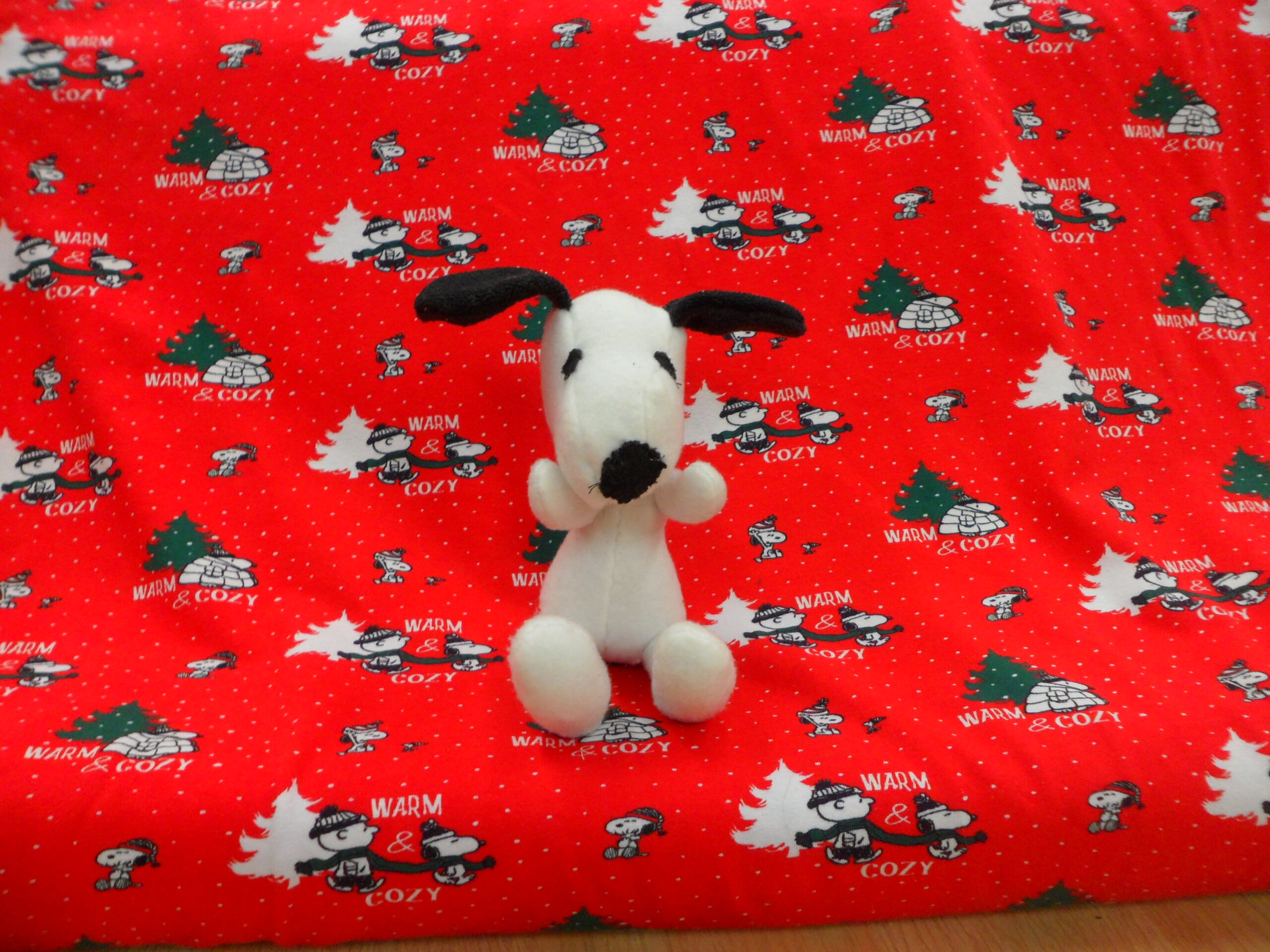 | DESIGN | SNOOPY AND WOODSTOCK AT CHRISTMAS ON RED |